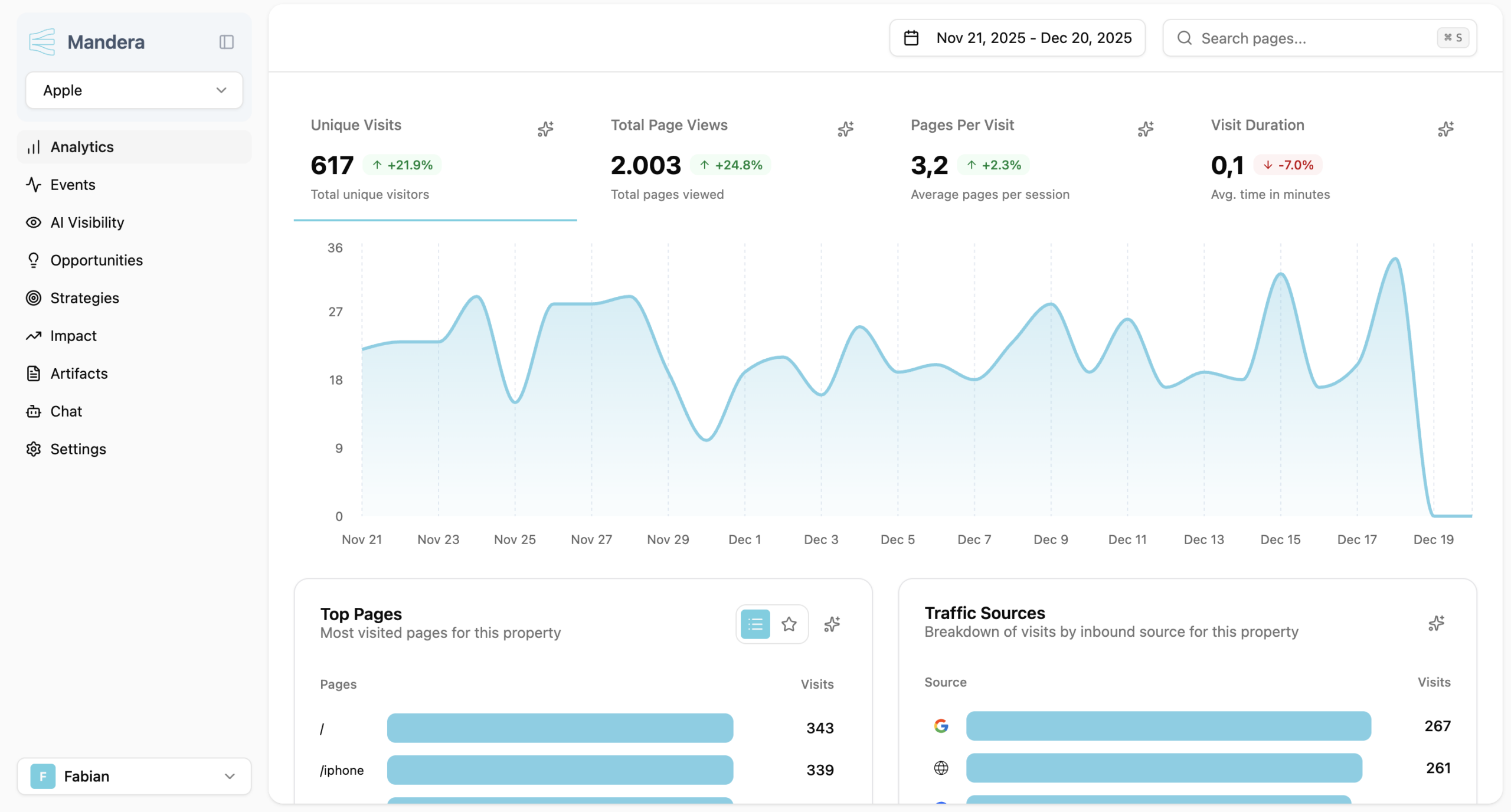 Mandera connects your analytics, AI visibility data, website content, and market intelligence — then turns it into opportunities, strategies, and measurable impact.